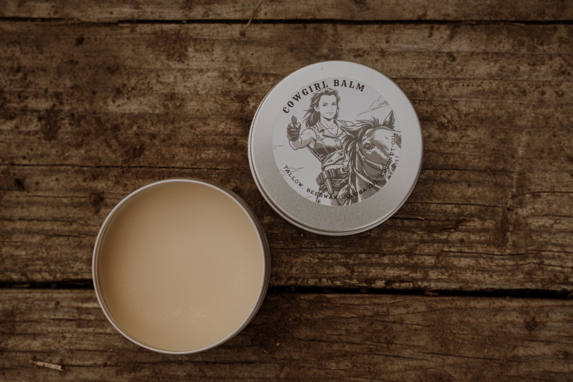Cowgirl Balm is an all-purpose, hard-working salve made for dry skin, sore muscles, weathered hands, and anywhere life gets rough. Inspired by long days, open land, and the grit it takes to keep going, this balm delivers deep moisture and lasting relief without anything fancy or fussy. Rich, nourishing ingredients soak in fast, soothe on contact, and stand up to wind, sun, sweat, and cold. Whether you’re riding, working, traveling, or just living full-tilt, Cowgirl Balm is your go-to for skin that needs real care—strong, reliable, and ready for whatever’s next.